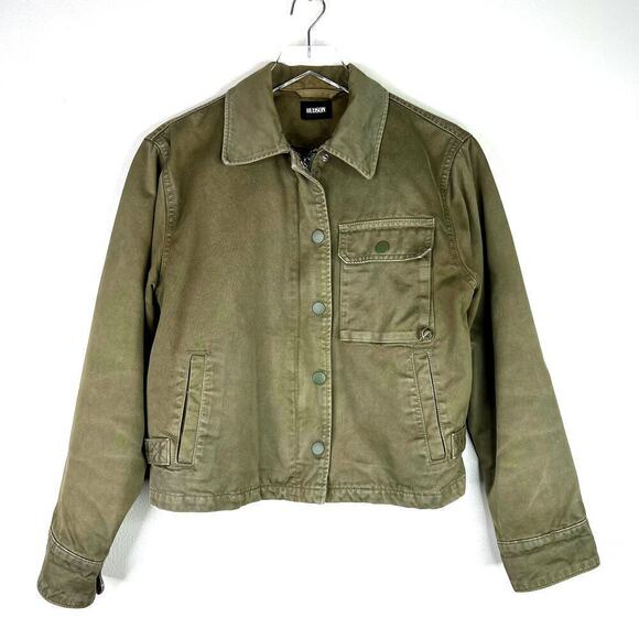 HUDSON Route Field Jacket Cropped Zip Snap Button Green XS Cotton Lined Pockets