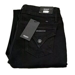 HUDSON Straight Stretch Denim Jeans 12/32 Flap Pocket Slim Fit Mid-Rise Black