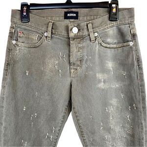 HUDSON The Riley Distressed Cropped Jeans in Light Olive Green Women's Size 27