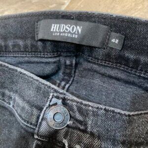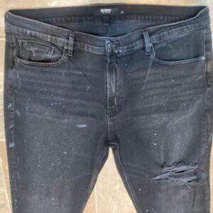 HUDSON | Zack Skinny Stretch Jeans Black Paint Splatter Distressed Denim Sz 42