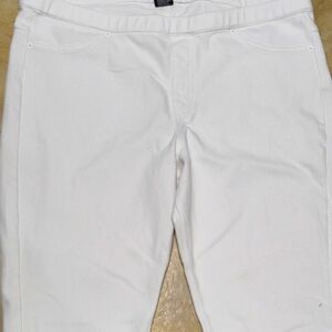 HUE All day comfort and style is given in these classic denim leggings. Beautiful bright white goes with everything. imported. Banded waist , faux fly, Waistband with no ride smooth elastic band. Front faux pockets with functional back pockets. made from 75 cotton 21 polyester and 4 spandex. like new. no. call outs!!. size XLg. measurements are approximately lying flat waist 17 to 18" inseam 29" rise 10". very soft!!!