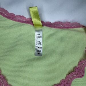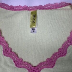 HUE Light Green Tee with Pink Lace Trim - Size M