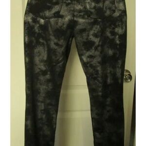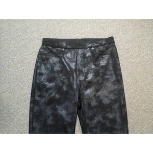 HUE Metallic Microsuede Knit Leggings Size Medium Black Silver