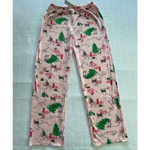 Pants: Elastic waistband. A whimsical kitty scene on pants. Inseam: Approx 30”
