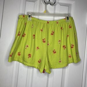 HUE Women’s Medium Green Palm Tree Print Lounge Sleep Shorts Cotton