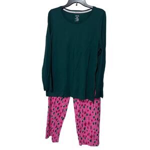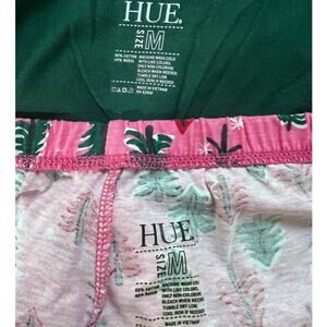 HUE Womens Medium Holiday Pajama Lounge Set Christmas Trees Pink & Green NEW!