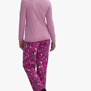 HUE Women's Printed Knit Tee and Pant 3 Piece Pajama Set.