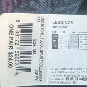 HUE women's leggings floral print pink/purple/grey M/L NWT! elastic waist length 32"