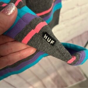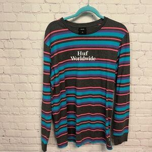 HUF Worldwide pastel striped preppy retro cotton tee, unisex, Large