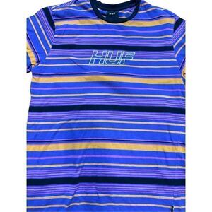 HUF men’s purple yellow stripe shirt 90s vibes retro sz M