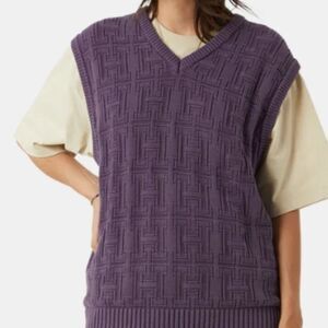 The Interlaced Jacquard Overdyed Vest blends rich pigment-dyed cotton materials with custom couture-inspired jacquard artwork and rib knit details.