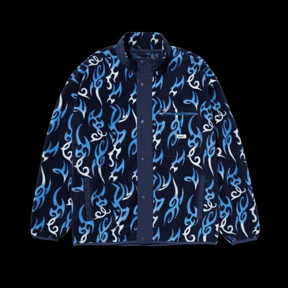 Holiday throws out seasonal conventions and redefines winter wardrobe staples by leaning into contrasting color palettes, unique graphic placements, and revitalized HUF heritage. Featuring all-over printed artwork inspired by ‘90s pop culture aesthetics, the Static Polar Fleece mixes seasonal colors and tonal accents with modern details to reimagine classic fleece design.