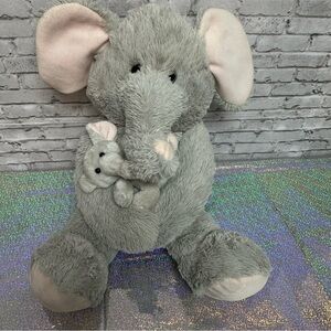 HUG FUN 20" ELEPHANT and BABY Hugging Stuffed Animal Plush Gray Pink Floppy Ears. Great pre-owned condition. Clean.