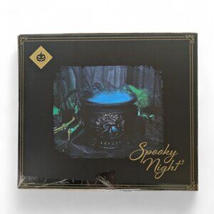 This "Spooky Night" cauldron works by adding water and plugging it in, which activates a mist maker unit with LED lights that change color. Featuring a skull and snake, with a giant spider to add the ambiance.