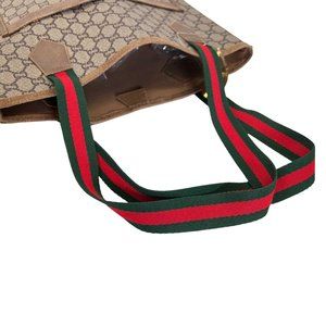 Authentic Gucci Tote Bag Plus Brown PVC Used GG Handbag Vintage