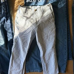 Good to great condition boys denim and athletic sweatpants and one pair of linen pants sizes extra small too small and size 6 through nine on denim. See photos for sizes.