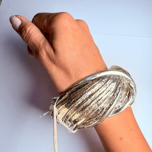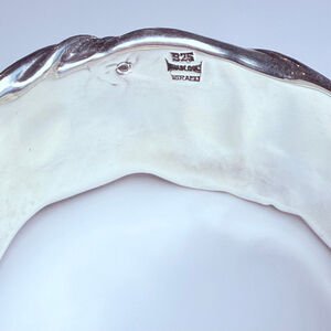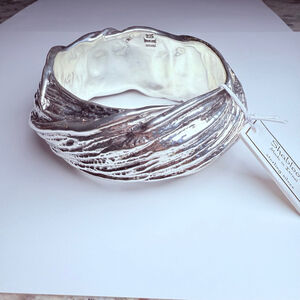 HUGE heavy 15mm thickness handmade abstract rooted design 40mm wide bangle bracelet by Didae Shablool from Isreal. The bangle bracelet is resin filled in the center which allows for it to mold in such a way to make such designs. The resin is then covered in solid 925 sterling silver. Shablool was founded in 1989 in Israel by brothers Hillel and Yochai Shablool, creating unique, handcrafted 925 sterling silver jewelry with personal detail and quality. Absolute must have piece, brand new!