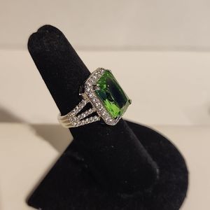 HUGE GREEN EMERALD CUT RING