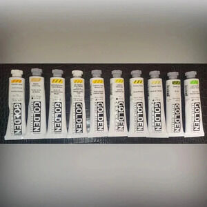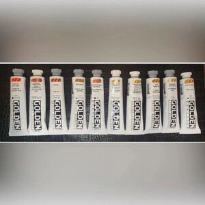 ๐จ HUGE LOT of 60 ๐๏ธ GOLDEN ACRYLIC Heavy Body PAINT TUBES 2 fl oz (59mL)