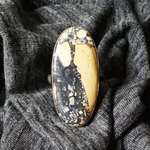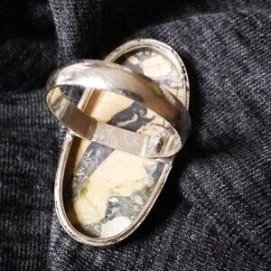 HUGE! Minimalist Maligano Jasper Ring 925 Sz 9.25! Sandy Beige Gray Color Scheme