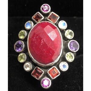 HUGE! Nicky Butler Sterling Silver Ring Size 12 Multi Moonstone Amethyst Ruby