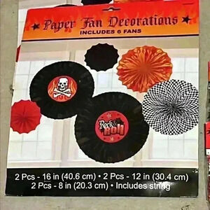 This is a large lot of party decorations. comes with 2 packages of table toppers, 1 package is 30 cutout pieces, 2 packages of confetti, 1 - 5ft scene setter 3 packages of lanterns (each package has 3 lanterns) and 2 packages of fans ( each package has 6 fans). Fill a whole room with the fun rock and roll themed decorations.