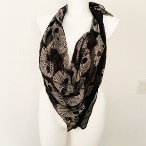 HUGE! Soft Black Gold Bling Skull Print Scarf NWT