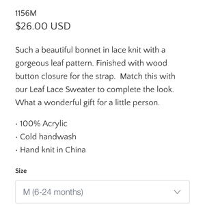 With matching Rosy bonnet~ medium 6-24 months