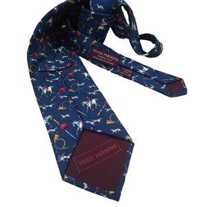 HUGH PARSONS Blue Hunting Silk Tie HANDMADE ENGLAND 59"/ 3.8" EC
