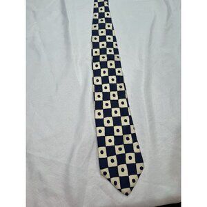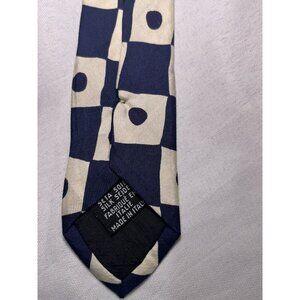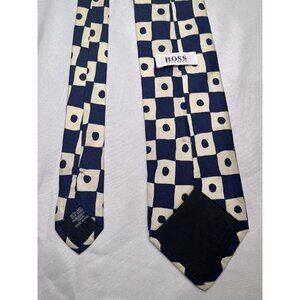HUGO BOSS 100% SILK NAVY BLUE & IVORY GEOMETRIC Made In Italy