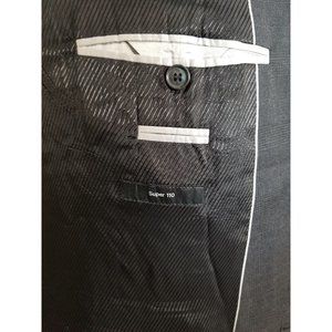 HUGO BOSS 42S MENS SPORT COAT WINDOWPANE SUPER 110 CHARCOAL GRAY TWO-BUTTON S329