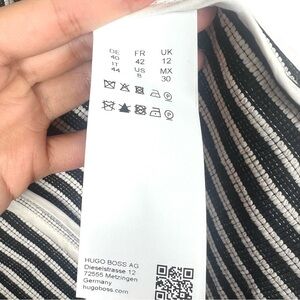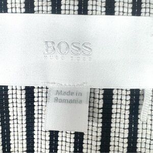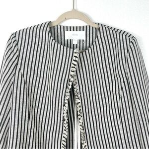 HUGO BOSS Black & White Striped KOMINA Fringe Trim Collarless Jacket size 8