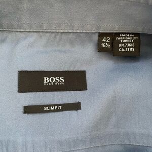 Discover the HUGO BOSS Blue Button Front Long Sleeve Slim Fit Men’s Cotton Dress Shirt, a perfect blend of style and comfort. This pre-loved shirt is in Good Plus condition, with no defects, ready to upgrade your wardrobe.