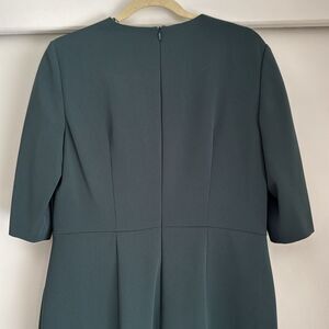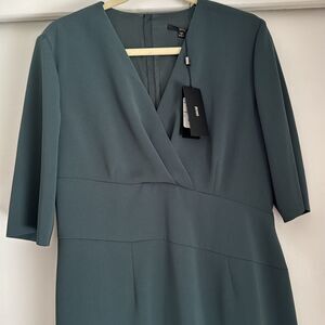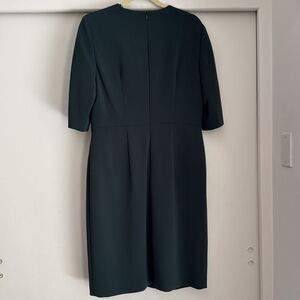 Drapiela Emerald Green Crossover Front Sheath Dress by BOSS HUGO BOSS. Front has stunning diagonal accent across from side to side, almost like a faux wrap style. Super flattering. Half sleeves. Lined. Hidden back zip.