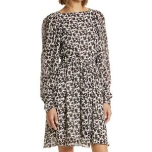 HUGO BOSS Duffi Long Sleeve Tie Waist Dress Black Coffee Fantasy US Size 6 NWOT