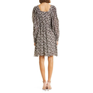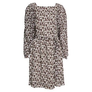 HUGO BOSS Duffi Long Sleeve Tie Waist Dress In Black Coffee Fantasy. A modern print enlivens this puff-sleeve dress with a matching sash cinching the waistline.
