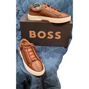 HUGO BOSS Gary Tenn BUHD Medium Brown Lace Up Tie Genuine Leather Tennis Shoes 9