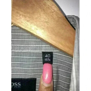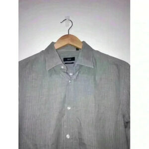 HUGO BOSS Long Sleeve Shirt Stretch Grey Striped Collar Dress Shirt 15 3/4 40