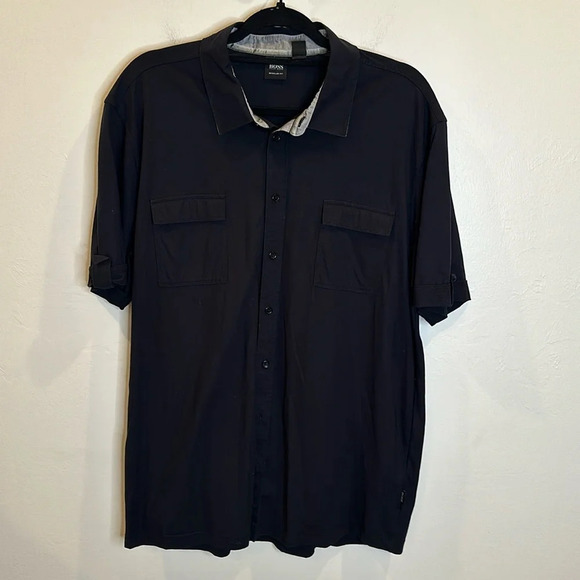 HUGO BOSS MENS BUTTON DOWN SHIRT REGULAR FIT SIZE XXL 100% COTTON NAVY BLUE