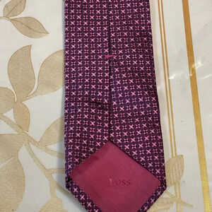 HUGO BOSS Men's 100% Silk Neck Tie Purple geometric
