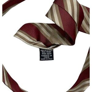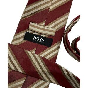 HUGO BOSS Men's 100% Silk Necktie LUXURY Tie Burgundy Striped W:3.7" EUC