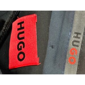 Keywords: HUGO BOSS, dress pants, men's pants, slim fit, checkered pants, dark blue pants, business attire, formal wear, new with tags, size 30R, professional clothing, office wear, designer pants