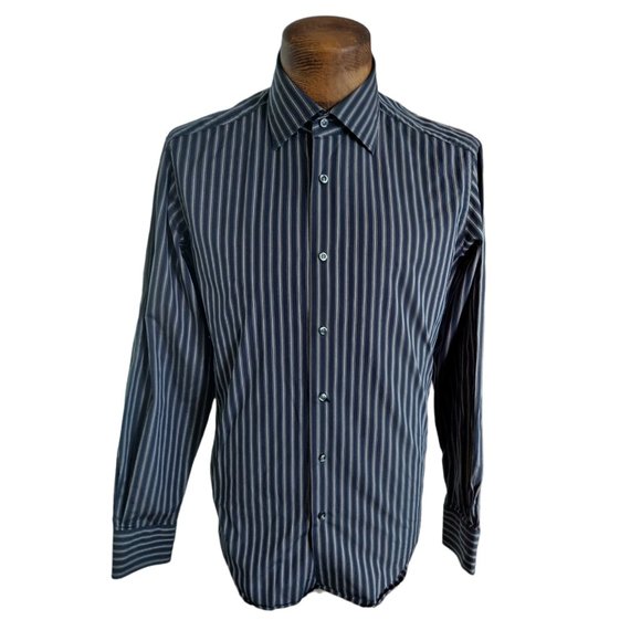 Hugo Boss Men's Vertical Striped Button Front Shirt Size 15; 34/35