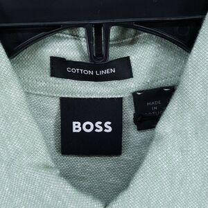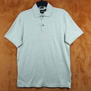HUGO BOSS Polo Shirt Mens Small Green Short Sleeve Cotton Linen Blend PRESS $158