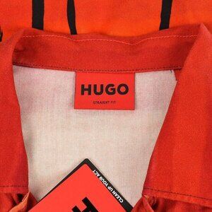 HUGO BOSS Red Palm Tree ELLINO Relaxed Fit Short Sleeve Viscose Shirt NWT Size: Medium Hugo Boss Men's Shirt Model: Ellino Size: Medium 100% Viscose Red Palm Tree Pattern Straight Fit Notched Collar Button Closures Breast Pocket Short Sleeves No Vents Chest: 47" Back: 19-5/8" Sleeve: 10-1/8" Length: 30-1/8" New w/ Tags - No Defects