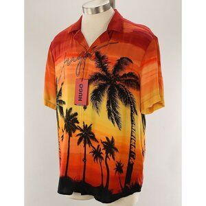 HUGO BOSS Red Palm Tree ELLINO Straight Fit Short Sleeve Viscose Shirt M NWT