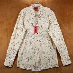 HUGO BOSS Shirt Mens 15.5 39 Tan Spotted Button Up Extra Slim Fit ELISHA $138
