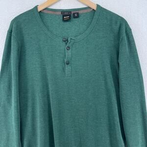 HUGO BOSS Shirt Mens XL Trix Slim Henley Waffle Thermal Long Sleeve Cotton Green
