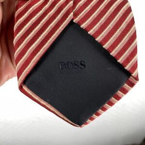 HUGO BOSS Striped Red Handmade Mens Tie Classic 3.5" x 58.5" Silk Viscose Italy