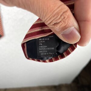 Elevate your style game with this HUGO BOSS handmade tie. The classic 3.5" x 58.5" design features a bold red striped pattern, perfect for adding a pop of color to any outfit. Made with a luxurious blend of silk and viscose, this tie is both soft and durable. The woven fabric type and adjustable feature make it a versatile accessory that can be worn for any occasion. The tie also showcases the HUGO BOSS logo, adding a touch of sophistication to the overall design. Crafted in Italy, this tie is a must-have for any fashion-forward gentleman.
